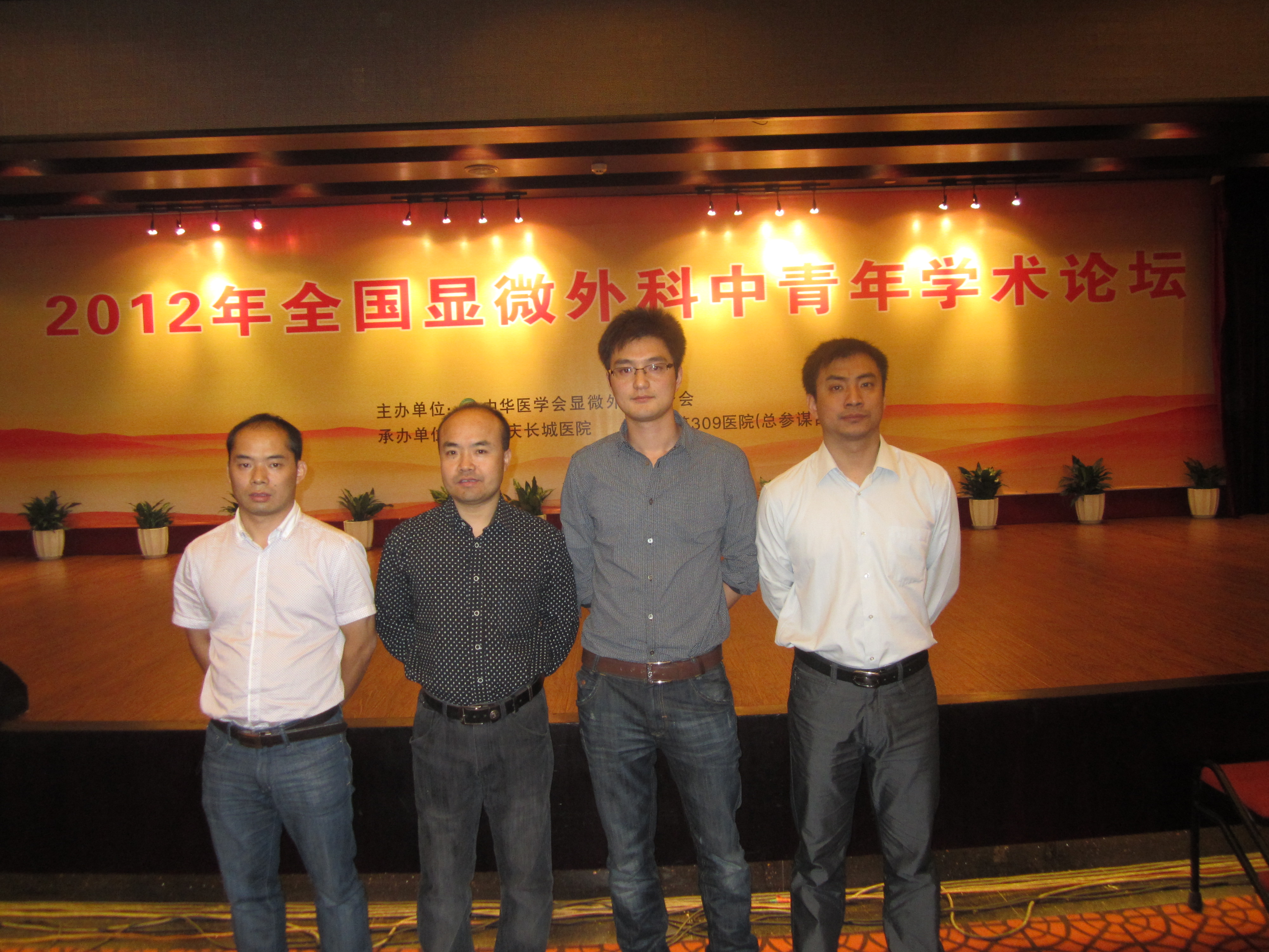 2012年10月12-14日,由中华医学会显微外科学分会主办的全国显微外科中青年学术论坛在美丽的山城重庆召开。会议分为热点辩论、优秀论文竞赛、主题发言等三个部分,分别就显微外科的热点、焦点问题展开了激烈的辩论和讨论,也集中展示了我国显微外科领域近年来取得的进步和发展。全国共有近300位代表出席了本次会议,会议收到论文近500篇,中华医学会显微外科学分会主任委员裴国献教授、前任主任委员侯春林教授、候任主任委员刘小林教授均到会参加了会议。我院手外科巨积辉、刘新益、熊胜、王天亮等四人参加了会议,并做了主题发言和论文交流。共有22人参加了优秀论文竞赛,经过激烈的论文演讲和现场答辩,共评出一等奖3名、二等奖5名、三等奖7名。我院手外科巨积辉医师参加了优秀论文竞赛,并荣获一等奖。最后,大会还举行了隆重的颁奖仪式,裴国献主委发表了热情洋溢的讲话,勉励全国显微外科同道继续努力,为保持我国在显微外科学科领域的领先做出贡献。