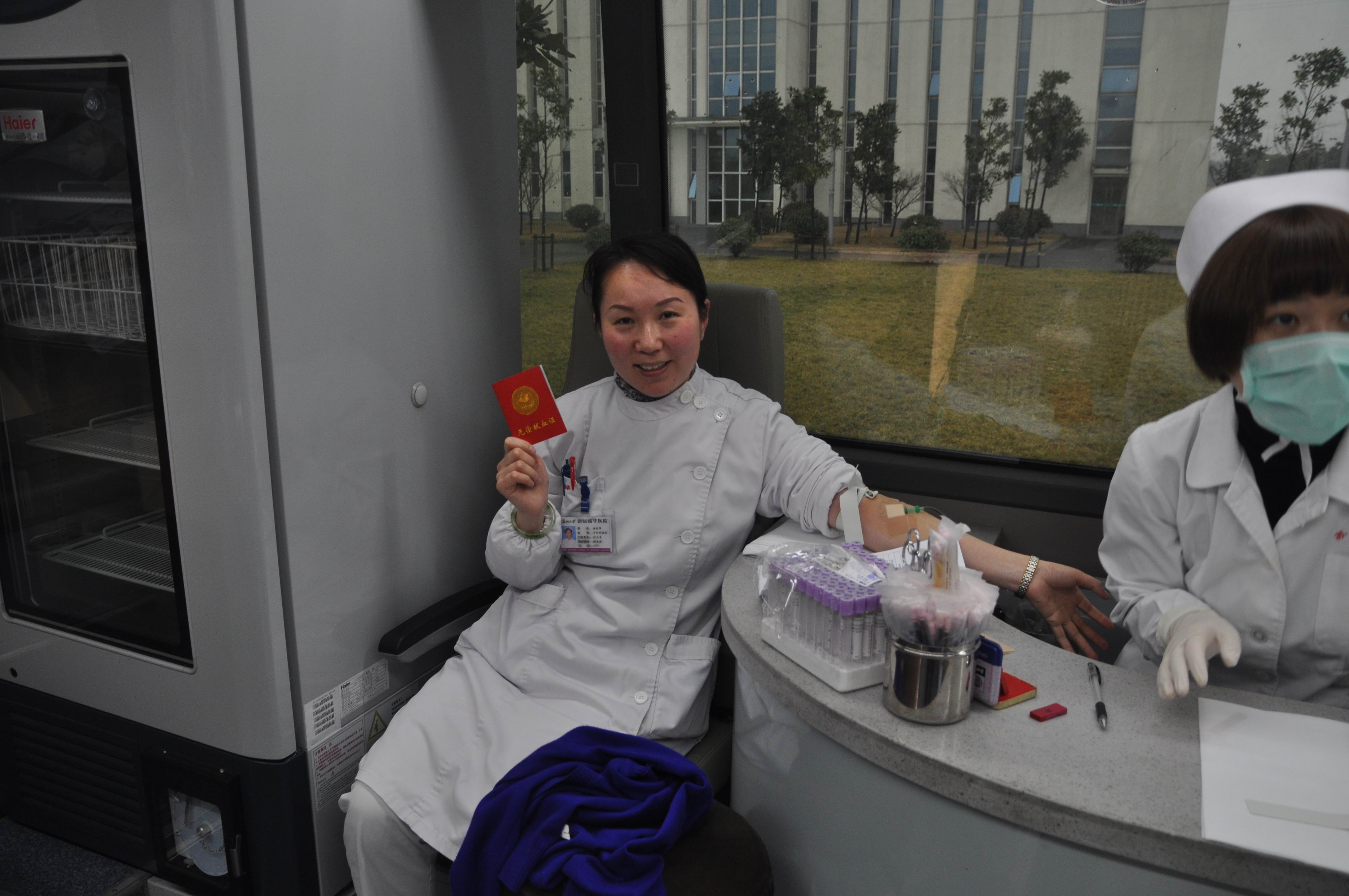 (七病区护士长杨美华义务献血)