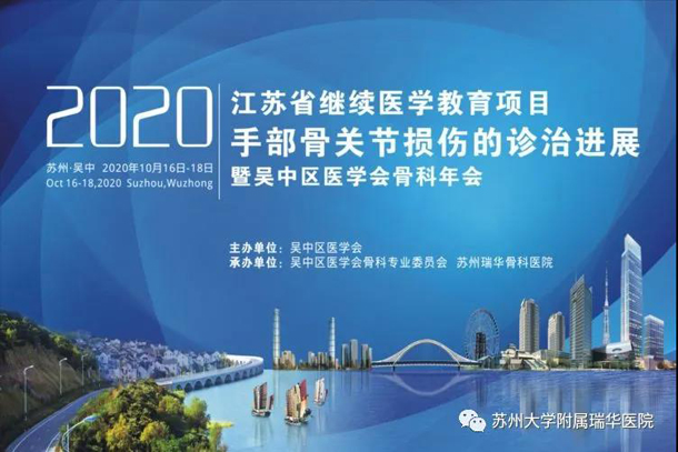 金秋十月,太湖之滨,吴中圣地,喜迎盛会。由苏州市吴中区医学会主办,吴中区医学会骨科专业委员会、苏州瑞华骨科医院共同承办的2020年江苏省继续医学教育项目“手部骨关节损伤的诊治进展”暨吴中区医学会骨科年会于2020年10月16日-10月18日在苏州瑞华骨科医院隆重召开!