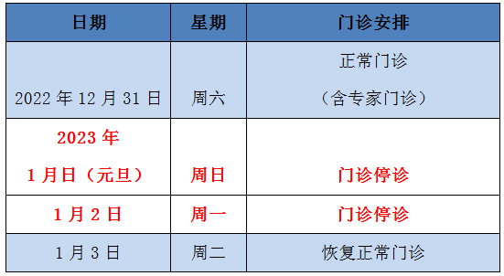 2023年元旦期间门急诊工作安排