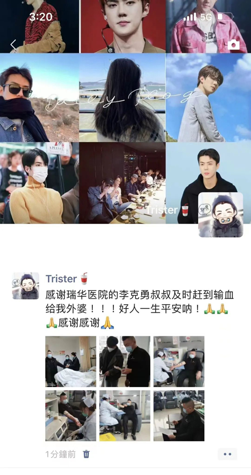 朋友圈里看到求助…… 2月26日上午,李克勇在朋友圈看到一则求助,90岁高龄的阿婆动手术急需A型血,这一刻,他想到自己是A型血,就立刻联系了家属……