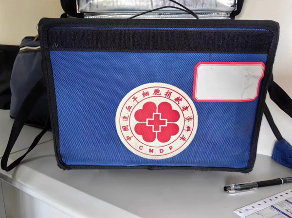 工作人员将这袋珍贵的造血干细胞