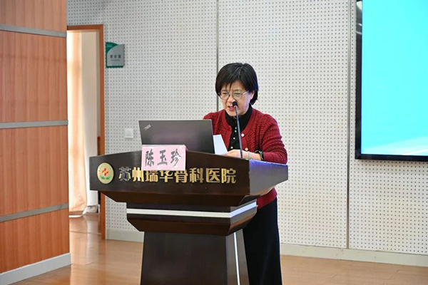 陈玉珍秘书长代表吴中区医学会骨科专业委员会作了相关讲话,她充分肯定了苏州瑞华骨科医院的科教成果,并提出一定要做好传帮带的作用,通过多举办学术会议,推动吴中区医疗技术高质量发展。本次会议议题丰富,希望大家学有所获。