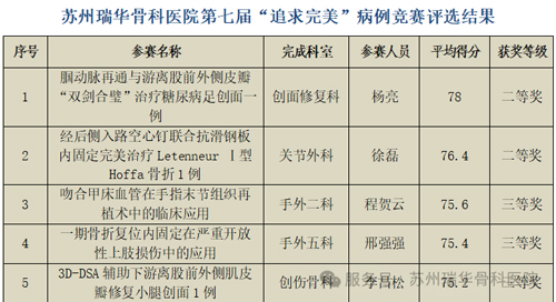 本次竞赛以科室为单位进行申报,申报者均为手术者或第一助手,申报材料内容包含病情摘要、病例图片(术前、术中、术后、随访1年以上)、创新性说明、推广实用价值等各方面。经过前期严格的形式审查,13项优秀病例从全院各科室脱颖而出,进入最终评审。由巨积辉副院长、运动医学科金光哲主任、创面修复科周荣主任、创伤骨科李雷主任、手外二科王凯主任、手外四科唐林峰主任等专家组成的评审团,从科学性、创新性、实用性等5大维度17项细则进行综合评分。