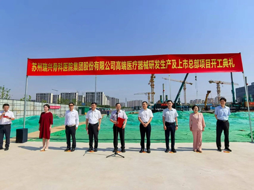 盛夏启幕万象新,开工奋进正当时。2025年8月20日上午,迎着旭日东升,苏州瑞兴骨科医院集团股份有限公司高端医疗器械研发生产及上市公司项目在吴中生物医药产业园隆重举行开工仪式。苏州市政协副主席、吴中区委书记丁立新,吴中区委常委、经开区党工委副书记、管委会副主任黄乃宏,吴中区人民政府副区长李烨,经开区副主任王晓岚,苏州瑞兴骨科医院集团董事长侯瑞兴,苏州瑞兴骨科医院集团股份有限公司总经理侯念龙,江苏建院营造股份有限公司董事长徐忠民,苏州建龙工程建设咨询有限公司董事长俞向龙等领导出席活动。